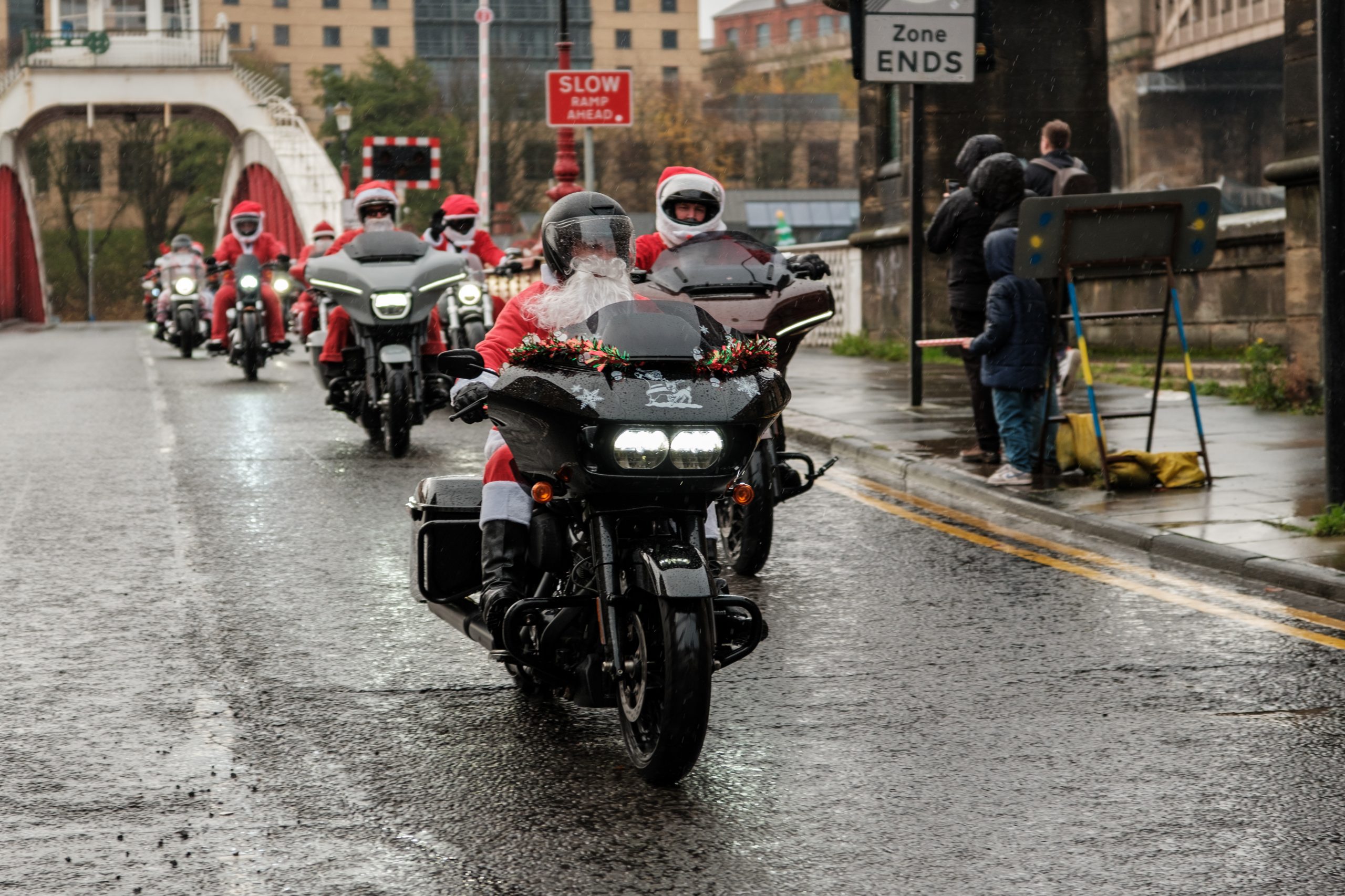 Christmas is a time for giving and Geordie Chapter members are always very generous. Our Santa Run is usually the first weekend in December and, weather permitting, it’s always very well attended! We choose charity’s to donate to – often in the form of presents and gifts – then have some sort of ride out, dressed up as Santa’s, along a predetermined route to. Its great to see the kids faces along the route.